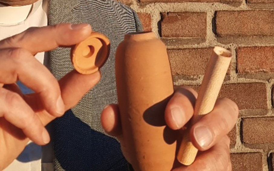 Eine ganz besondere Bereicherung hat jüngst die Dachlandschaft der Dülmener Innenstadt erfahren: Ein passgenau angefertigter runder Schornstein bildet seit Anfang September den Abschluss des gläsernen Tetraeders, der sich über dem archäologischen Bodenfenster „Keller Pins“ unweit der Pfarrkirche St. Viktor erhebet. „Künftig bewirkt der Kamineffekt eine gute Durchlüftung des alten Gemäuers“, erklärt Josef Merselt aus Wettringen, dessen Firma „Metall & Montage“ die technische Neuerung aus Metall entwickelt hat. Farblich ist der kleine Kamin (wie der gesamte Tetraeder) dem Stabgitterzaun der Anna-Kindergarten angepasst, der bereits vorher vorhanden war.