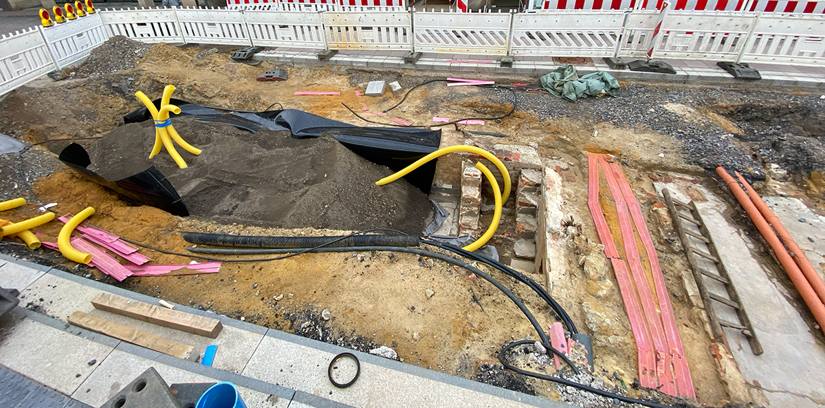 Das Grünflächenamt der Stadt Dülmen und der Landschaftsverband Westfalen-Lippe (LWL) sind übereingekommen, die vom Archäologen-Team um Dr. Jentgens freigelegten früheren Kellerbereiche der einstigen Bebauung der Marktstraße weitestgehend im Erdreich zu sichern. „Es wurde sich auf eine Verfüllung der Fundstelle samt Drainagetechnik geeinigt, die sowohl für die künftige Baumbepflanzung nicht abträglich ist als auch die historischen Spuren im Boden konserviert“, erklärt Dr. Gerard Jentgens. Damit wird auch das Untergeschoss vom berüchtigten „Braunen Haus“, der früheren Dülmener NSDAP-Parteizentrale, für spätere Generationen bewahrt.