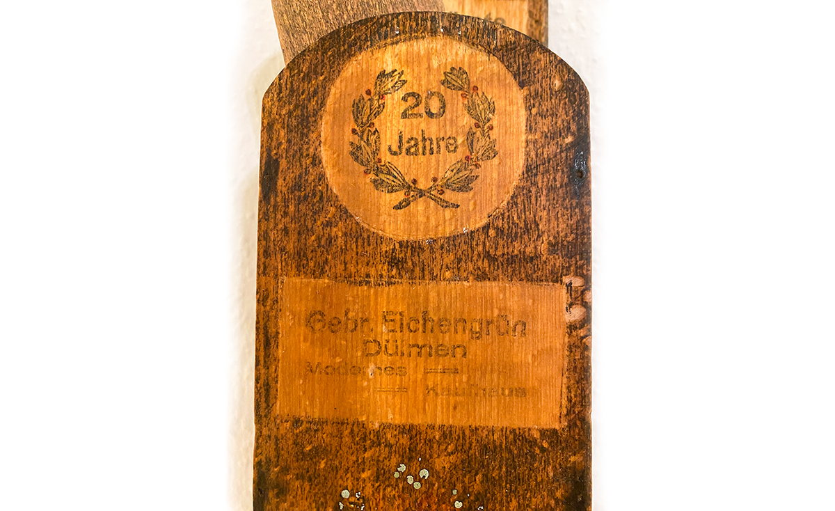 Eine überraschende Nachricht erreichte das Redaktionsteam am Abend des Holocaust-Gedenktags, als der Messengerdienst von Facebook per Sound eine neue Mitteilung ankündigte. Der Absender war August Stüer. Zu ihm hatten wir während des Entstehungsprozesses des Buches "HIer wohnte ..." Kontakt aufgenommen. Denn er hatte vor Jahren ein Foto eines Fundstückes in der Gruppe "damals in Dülmen" auf Facebook gepostet, welches eine Kleiderbürste, wohl ein Werbegschenk, des Modehauses Eichengrün zeigte. Das Textilwarengeschäft wurde 1910 von den Brüdern Hermann und Sally Eichengrün an der Marktstraße in Dülmen gegründet. Während der NS-Zeit emigrierte die jüdische Kaufmannsfamilie nach Südamerika.