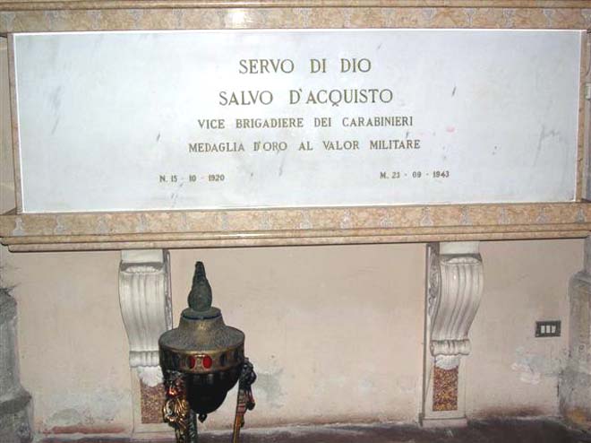 Am 22. September 1943 kam es in einem Munitionsdepot nahe Rom bei einer Razzia deutscher Soldaten zu einer Explosion, bei der ein SS-Mann starb und zwei weitere Deutsche verletzt wurden. Als Vergeltung sollten willkürlich 22 Menschen aus dem Dorf erschossen werden. D'Acquisto, Unteroffizier der italienischen Carabinieri, übernahm die volle Verantwortung für den vermeintlichen Anschlag und bat um Freilassung der Zivilisten. Er wurde am 23. September 1943, wenige Wochen vor seinem 23. Geburtstag, erschossen. Beigesetzt ist D'Acquisto in der Kirche Santa Chiara in seiner Geburtsstadt Neapel.